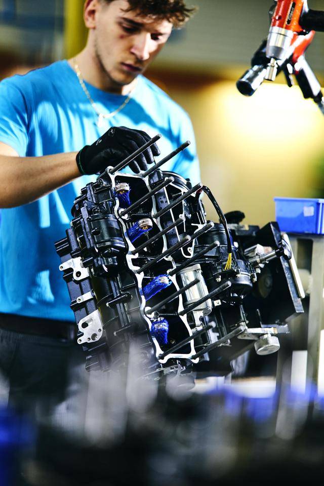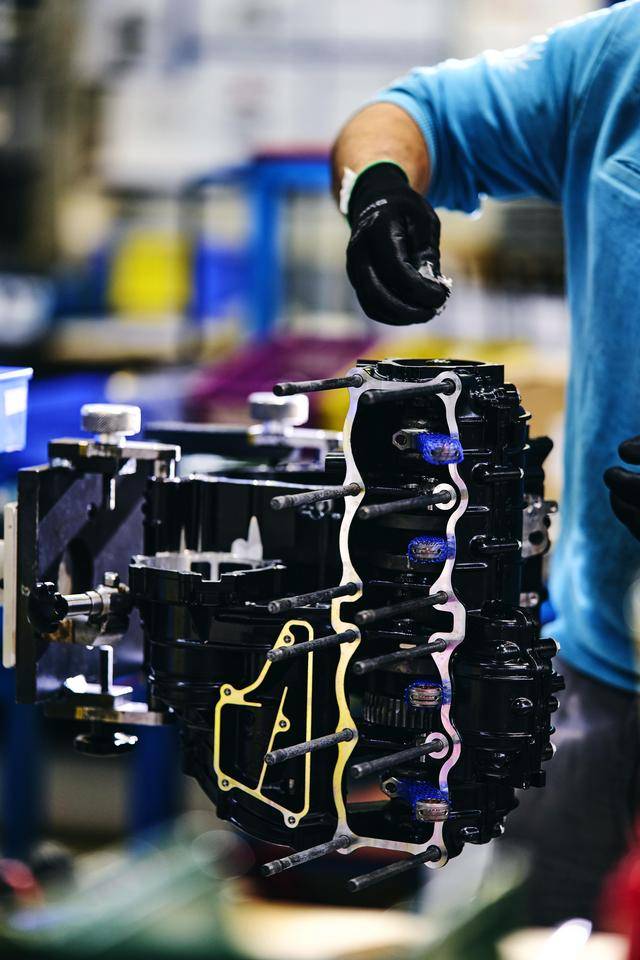 下面的圖片是攝于 2024 年的、Superveloce 1000 Serie Oro 的發(fā)動(dòng)機(jī)生產(chǎn)組裝線。