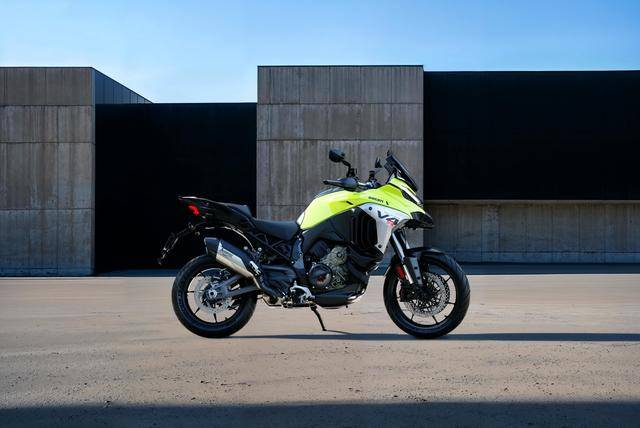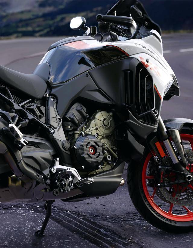 現(xiàn)行的 Multistrada V4、V4 S 攬途搭載一副水冷 V 型 90 度四氣缸、每氣缸四氣閥的 Granturismo 發(fā)動機,排氣量 1158 cc,最大動力輸出與 2024 款同為 125 kw(歐洲版,約 170 匹。國內(nèi)現(xiàn)行銷售的版本為 124 kw)。車體方面,該車采用一副鋁合金制的單體式車架,數(shù)字式的儀表板,前 19、后 17 英寸規(guī)格的車輪等。配置更高的 Multistrada V4 S,采用了更高級別的 Brembo 布雷博前剎車卡鉗,Marzocchi 配套的電子控制自適應懸掛系統(tǒng),尺寸更大的 TFT 全彩色數(shù)字儀表板,以及更豐富的電子輔助騎行控制系統(tǒng)等。