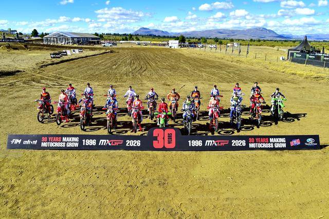 從最初的行動集團(Action Group)、Youthstream 到現(xiàn)在的前方賽車(Infront Moto Racing),自 1996 年開始,F(xiàn)IM 越野世界錦標賽的推廣專營權(quán)公司就一直掌握在盧昂戈(Luongo)家族手中,到 2026 賽季、進入三十周年。作為慶祝環(huán)節(jié)之一,賽前舉行了車手的大合照。賽會稱,三十年過去了,但故事還在繼續(xù),且(影響力)比以往任何時候都更強大,他們?nèi)栽跁鴮懺揭百愜嚨奈磥怼?/p>