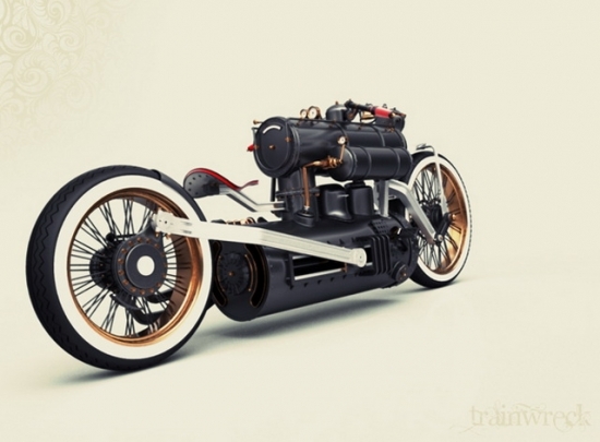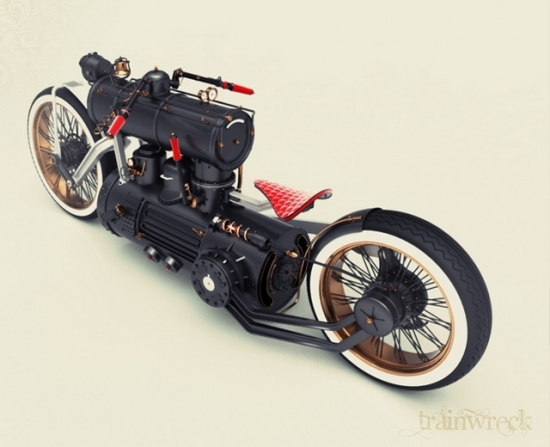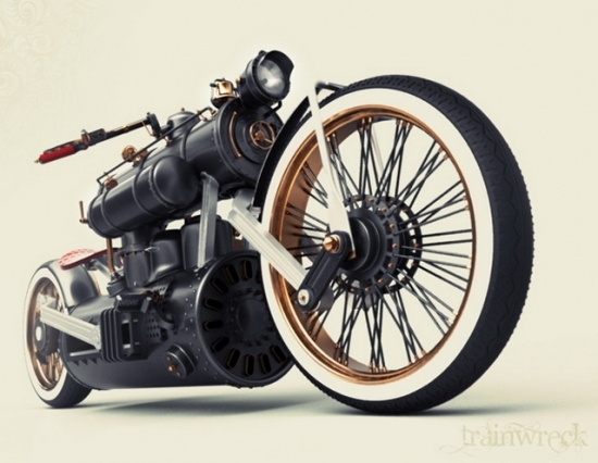 核心提示:上圖這輛名為T(mén)rain Wreck Bike Concept的超凡脫俗摩托車(chē),它的特色就是充滿(mǎn)著Steampunk(蒸氣龐克)風(fēng)格。這位工業(yè)設(shè)計(jì)師的主要