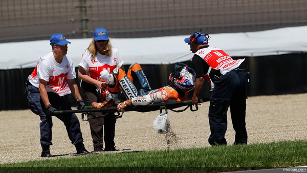 杜卡迪車手海登鬼使神差也在同一個(gè)位置嚴(yán)重摔車,賽會(huì)不得不第二次打出紅旗終止了排位賽。海登就沒(méi)有斯皮斯走運(yùn),傷勢(shì)嚴(yán)重的他被救護(hù)車帶走,并已經(jīng)確定缺席明天的正賽。
