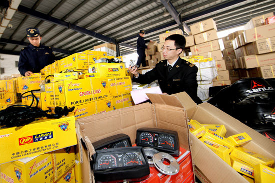 據(jù)悉,該案件是重慶一家公司向廣州海關(guān)下屬南沙海關(guān)申報出口摩托車配件一批。海關(guān)查驗(yàn)發(fā)現(xiàn)這些摩托車配件標(biāo)有“力帆”、“SANLG”等國內(nèi)自主品牌,共有離合器、火花塞、齒輪、鞍座等摩托車配件137463件。經(jīng)商標(biāo)權(quán)利人現(xiàn)場鑒定,確認(rèn)屬于假冒產(chǎn)品,初步估值約為110.4萬元。
