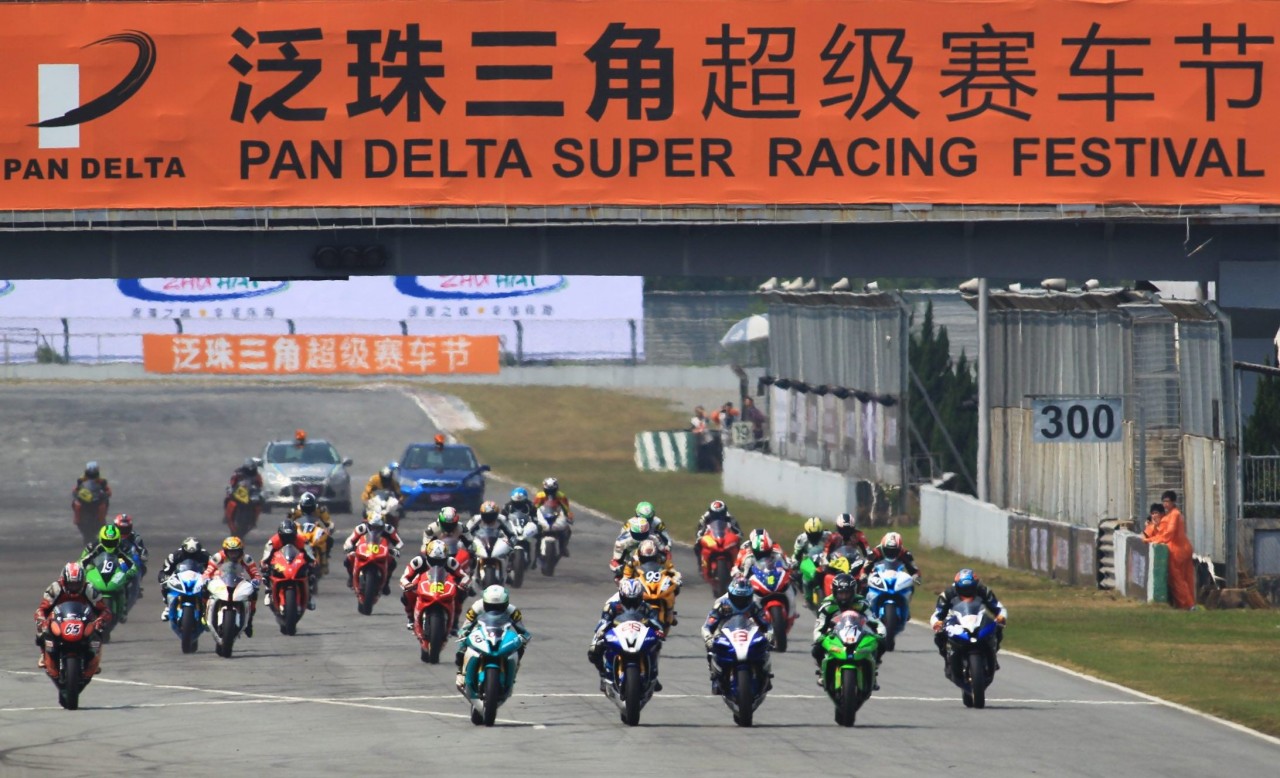 泛珠是少有的連周六也安排數(shù)場正式比賽的賽事。下午2點,經(jīng)過了一上午的排位、熱身,經(jīng)過了紅牛飄移追逐戰(zhàn)的暖場,泛珠最具人氣的比賽項目——超級摩托車的比賽正式開始。這個僅有10圈的比賽歷來是泛珠賽事的排頭兵,每當(dāng)它刺耳的尖嘯在賽場響起,后場里玩游戲、看表演、吃小吃的車迷就知道好戲登場,人流就開始自動往看臺上聚集。超級摩托車的比賽由于其強對抗、高速度、高危險性的特點,在國內(nèi)其他賽事里極為罕見。本場泛珠的超級摩托車組比賽相對以往,更是強手云集。除了Dan Kruger和黃世釗的巔峰對決,本場比賽的最大特點在于有多達(dá)8位國外高手的參與。這些車手都是經(jīng)過了MOTO GP等高水平比賽洗禮的高手,分別來自歐美、日本等摩托運動水平一流的地區(qū)。相信他們的加盟,必定能夠直接提高這個比賽的觀賞性,同時也能極大的提高國內(nèi)年輕車手的駕駛水平。