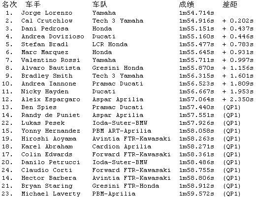 2013'MotoGP卡塔爾揭幕站:排位賽洛倫佐奪桿位羅西第7