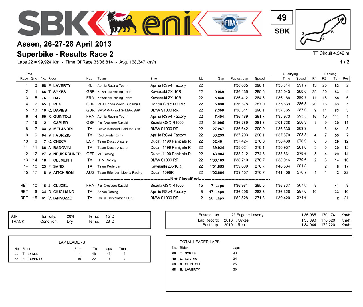 WSB 級(jí)別第一節(jié)賽事成績(jī)