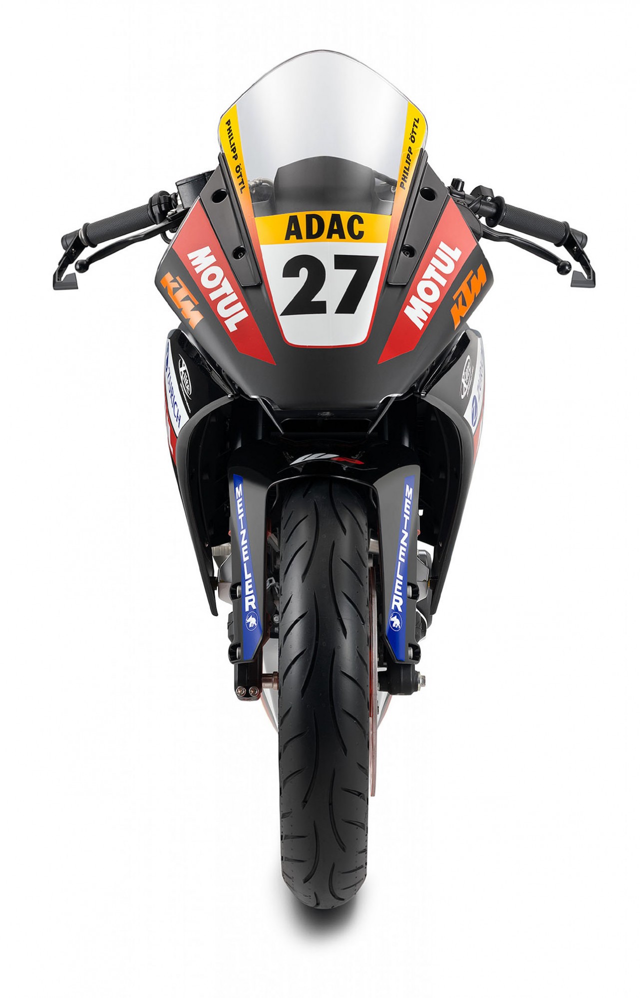同時,為了推廣這款新的RC390、為其戴上實戰(zhàn)的光環(huán),廠方還將同時為明年的德國ADAC 青年杯提供這款新車,供車手使用。ADAC,德國汽車協(xié)會,是德語Allegemeiner Deutsche Automobil Club 的簡稱,F(xiàn)IA 的成員之一,德國本土的大部分汽車、摩托車比賽均由其主導,而負責為摩托車運動提供更多新星的ADAC青年杯,則起源于1993年。