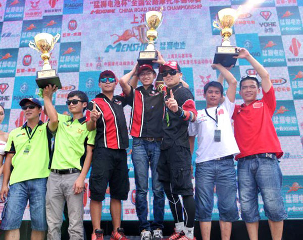 各車隊頂著上海罕見高溫展開了兩天的艱苦較量,決出了各個組別的冠軍。五羊-本田車隊在西安站失利后,卯足火力,強勢奪下“廠商杯”150cc組頭名,這是五羊-本田車隊今年收獲的第二座分站冠軍,距離2013年CRRC的總冠軍又更近了一步;渝安新感覺獲得66分排本站第二;宗申車隊獲得第三。在比亞喬踏板125CC組的比賽中,新蜂女子車隊的李睿紜憑借兩節(jié)比賽的穩(wěn)定表現(xiàn),以一分力壓幼獸王車隊的李宗奪得冠軍,成為本站比賽的亮點之一。