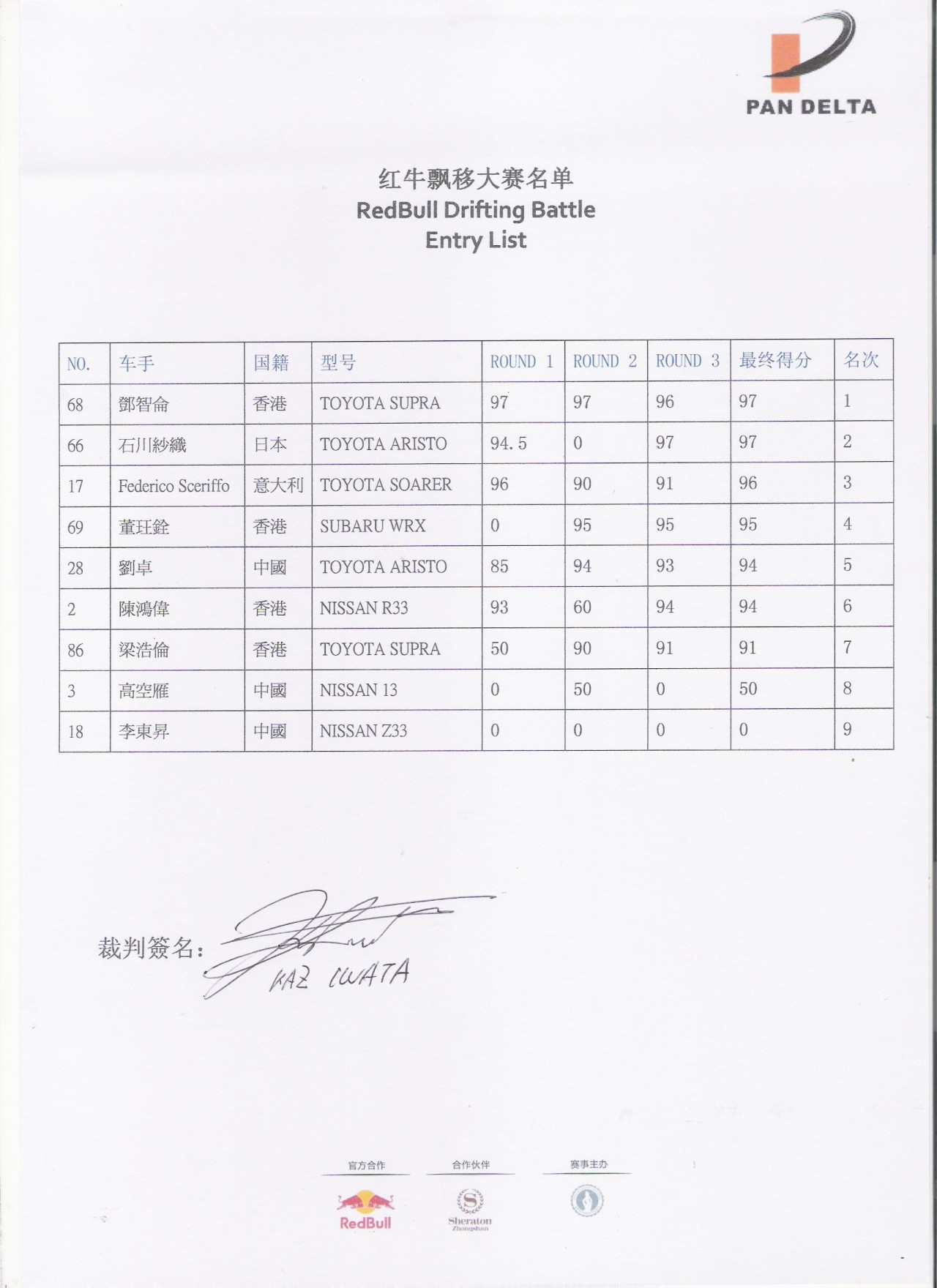 9月14日,2013泛珠三角超級(jí)賽車節(jié)秋季賽“紅牛飄移大賽”暨全年收官戰(zhàn)在珠海國(guó)際賽車場(chǎng)正式起跑。來(lái)自中國(guó)、日本、意大利的10位飄移高手為觀眾呈現(xiàn)了一場(chǎng)精彩絕倫的排位賽,駕駛紅牛賽車的中國(guó)香港車手鄧智侖以97分的成績(jī)位列第一,日本女車手石川紗織排名第二,意大利車手費(fèi)德里科暫居第三,他們將與另外五名車手一起參加16日的決賽。值得一提的是,鄧智侖和費(fèi)德里科曾在一個(gè)月前聯(lián)手在天門山上演了一場(chǎng)天路飄移戰(zhàn),當(dāng)時(shí)意大利人險(xiǎn)勝,這次移師珠海再戰(zhàn),志在一搏的鄧智侖終于占得先機(jī)。不過(guò),決賽依舊充滿懸念,費(fèi)德里科絕不會(huì)輕易言敗,好戲還在后面。