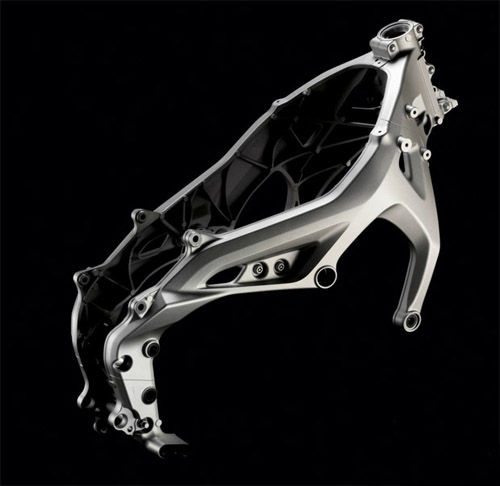 而車架則采用CF(Controlled Fill)鋁合金鉆石型車架,這種采用注射式進入模具的車架好處是無須燒焊,設(shè)計師在設(shè)計外型過程更具彈性,體積也較纖巧及輕量化,這種車架在FAZER上也有使用。MT-09的鴛鴦型鋁合金尾擔(dān)也是采用相同CF制造方法,由于同樣俱有輕量化好處,正如新聞稿形容有利轉(zhuǎn)向性能,而連接尾擔(dān)的Monocross尾避震採采用水平擺放方式,可節(jié)省大量空間,讓車架保持纖幼的優(yōu)點。