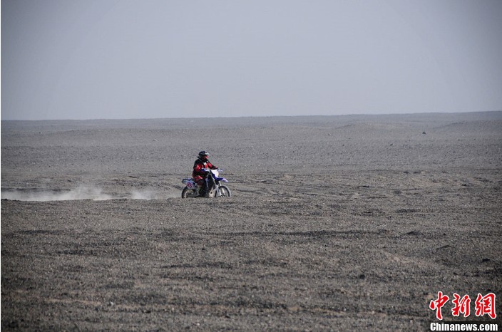 10月25日,中國(guó)·吐魯番環(huán)艾丁湖摩托拉力賽第一賽段結(jié)束,當(dāng)日,車手們艱難完成了250公里首賽段。接下來(lái)的兩天,車手們還需完成120公里的第二賽段,以及40公里的第三賽段。圖為戈壁一望無(wú)際,車手顯得很渺小。