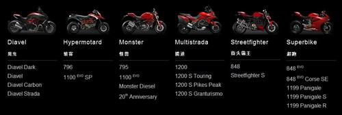 杜卡迪公司成立于1926年,并于1946年開始生產(chǎn)運(yùn)動(dòng)風(fēng)格的摩托車。杜卡迪摩托車因其“Desmodromic”高性能發(fā)動(dòng)機(jī)、創(chuàng)新的設(shè)計(jì)和領(lǐng)先的技術(shù)而聞名于世。杜卡迪摩托車涵蓋了眾多細(xì)分市場,目前可分為以下幾大車系:Diavel、Hypermotard、Monster、Multistrada、Streetfighter以及Superbike。