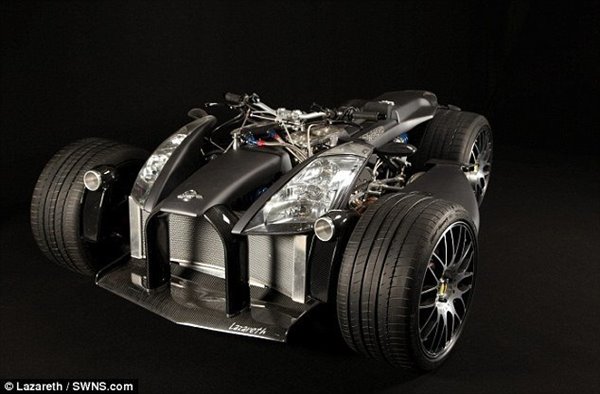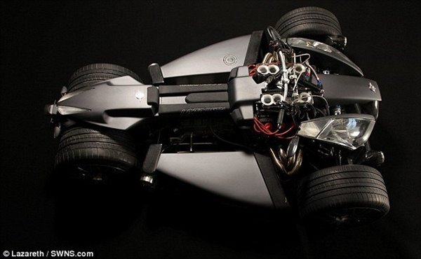 據(jù)英國《每日郵報》10月27日報道,法國機械工程師已經(jīng)設(shè)計出最新一款高性能四輪摩托車,其外觀酷似蝙蝠俠戰(zhàn)車,并搭載法拉利引擎,最高時速達150英里(約210千米/小時)。