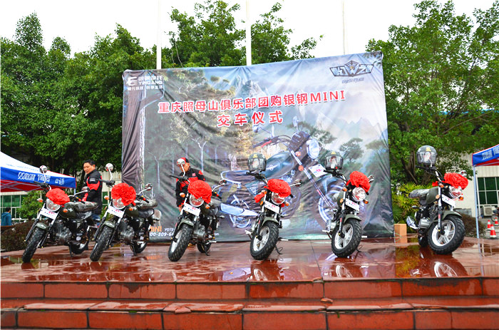 核心提示:11月1日下午3:00,銀鋼集團廣場,舉行了重慶照母山摩托車俱樂部團購銀鋼MINI交車儀式!此次交車儀式,照母山俱樂部團購6臺軍綠色