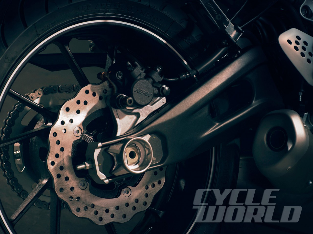 MT-07的龍骨是結(jié)構(gòu)簡(jiǎn)單的鋼管型backbone(脊骨)車架,同樣以引擎成為車架一部份,具有輕量化的好處,其單筒尾避震直接連接至波箱,配合低重心的底置式排氣管及歐翼式尾擔(dān),這些現(xiàn)時(shí)非常流行的設(shè)定,目的是讓車輛有更佳重心,借此增加車輛的彎向性能及靈活性。