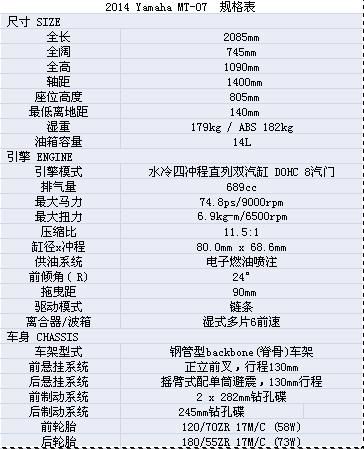 雅馬哈2014入門級(jí)街車MT-07