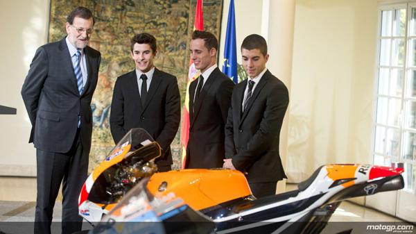 Marc Marquez(馬坤斯)、 Pol Espargaro和Maverick Viñales三位MOTOGP、Moto2 和Moto3的三個級別的西班牙籍世界冠軍車手都受到了來自總理的接見和祝賀!