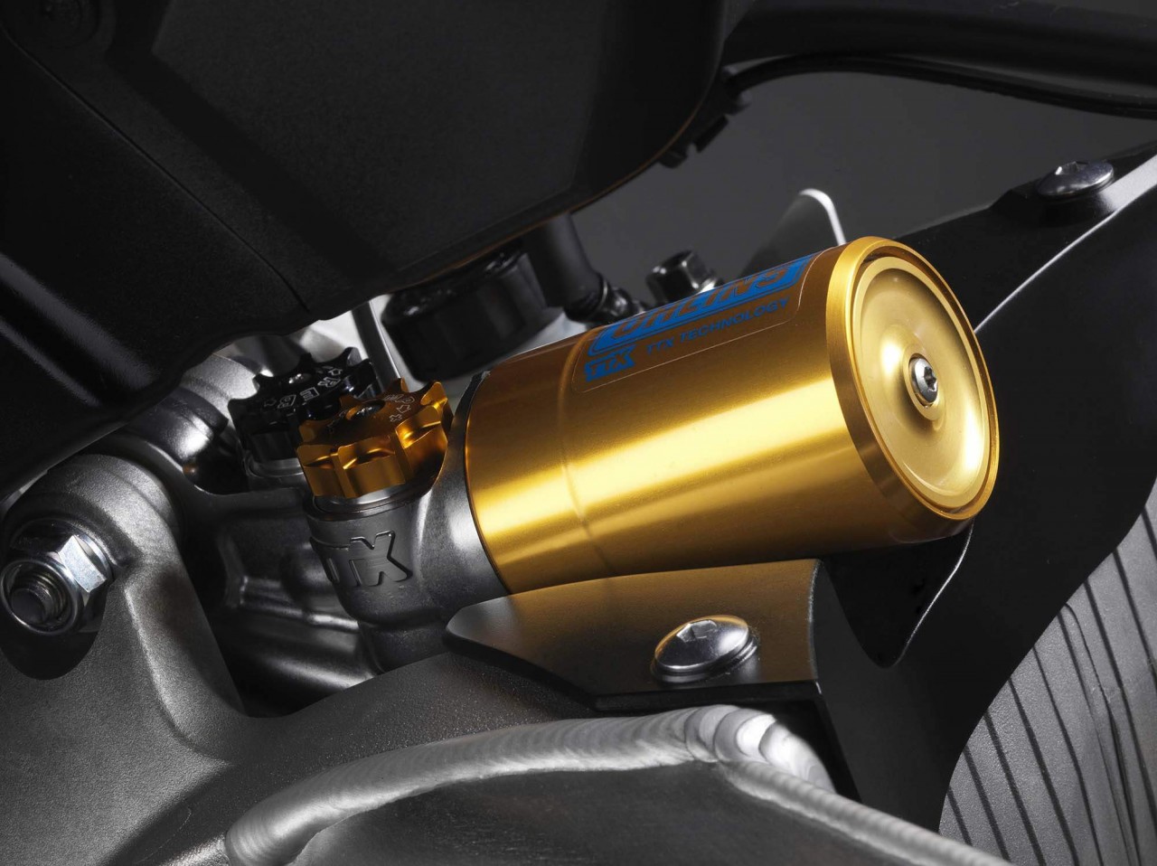 Pro-Link ?hlins shock with spring preload, rebound and compression damping adjustability;