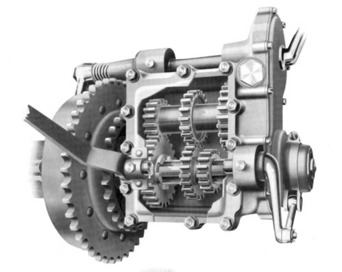 雖然頂置氣門發(fā)動(dòng)機(jī)優(yōu)于側(cè)置氣門發(fā)動(dòng)機(jī),但是頂置氣門發(fā)動(dòng)機(jī)也有自身局限——由凸輪軸通過(guò)氣門頂桿驅(qū)動(dòng)氣門,而氣門頂桿相應(yīng)增加了傳動(dòng)損耗。上世紀(jì)60年代起,更加先進(jìn)的頂置凸輪軸(OHC)發(fā)動(dòng)機(jī)開(kāi)始大行其道。OHC與OHV相比,最大的不同是:OHV的氣門位置在凸輪軸上方,凸輪軸利用氣門頂桿驅(qū)動(dòng)氣門;OHC的凸輪軸位置在氣門上方,發(fā)動(dòng)機(jī)飛輪通過(guò)皮帶或鏈條帶動(dòng)凸輪軸齒輪,由凸輪軸直接驅(qū)動(dòng)氣門。因此,OHC 與OHV相比,取消了氣門頂桿,相應(yīng)的傳動(dòng)損耗減小,可以采用更高的壓縮比,大幅提升發(fā)動(dòng)機(jī)轉(zhuǎn)速。因此,同等排量的發(fā)動(dòng)機(jī),OHC機(jī)比OHV機(jī)動(dòng)力大、油耗小、易修護(hù)。現(xiàn)代摩托車配置的基本都是頂置凸輪軸發(fā)動(dòng)機(jī)(OHC)。