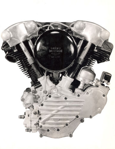 1948年,哈雷推出了“盤頭”發(fā)動(dòng)機(jī)作為“拳頭”的接班人,成為哈雷摩托車V形雙缸的新代表。“盤頭”采用的仍然是頂置氣門機(jī)構(gòu),不同的是安裝了鋁合金汽缸頭和液壓氣門頂桿,以及整體式鍍鉻搖臂罩,看上去像銀光閃閃的盤子——這就是“盤頭”綽號(hào)的來(lái)歷。