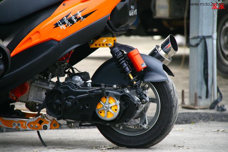 在有了大排氣量之后,化油器搭配也是一門(mén)學(xué)問(wèn),小排氣量若裝上大口徑化油器肯定不會(huì)跑,大排氣量車(chē)裝上原廠化油器也不會(huì)有好表現(xiàn),供油的部份也須經(jīng)由不斷的測(cè)試才能取得最佳的搭配。但是改裝踏車(chē),在功率大到一定的程度之后,緊接而來(lái)就是傳動(dòng)接合,前輪過(guò)度浮舉的問(wèn)題,這部份除了可靠拉長(zhǎng)車(chē)身的方法解決此問(wèn)題之外,傳動(dòng)的配置更是關(guān)鍵。以往一般人認(rèn)為,搭配較輕的普利珠與較硬的彈簧,讓轉(zhuǎn)速瞬間提升并于高轉(zhuǎn)接合,以得到較好的加速的觀念,在大幅度改裝的動(dòng)力下則未必適用。部份大功率的踏板車(chē)也可能為了讓起步時(shí)前輪不彈跳,后輪不打滑失控,而改用較低轉(zhuǎn)速接合離合器,或是配上接合較緩和的離合器和碗公組,以避免起步出現(xiàn)過(guò)度抬頭。