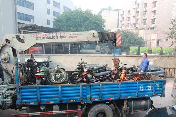 圖為公司向重慶工業(yè)博物館捐贈(zèng)的摩托車正在裝車。