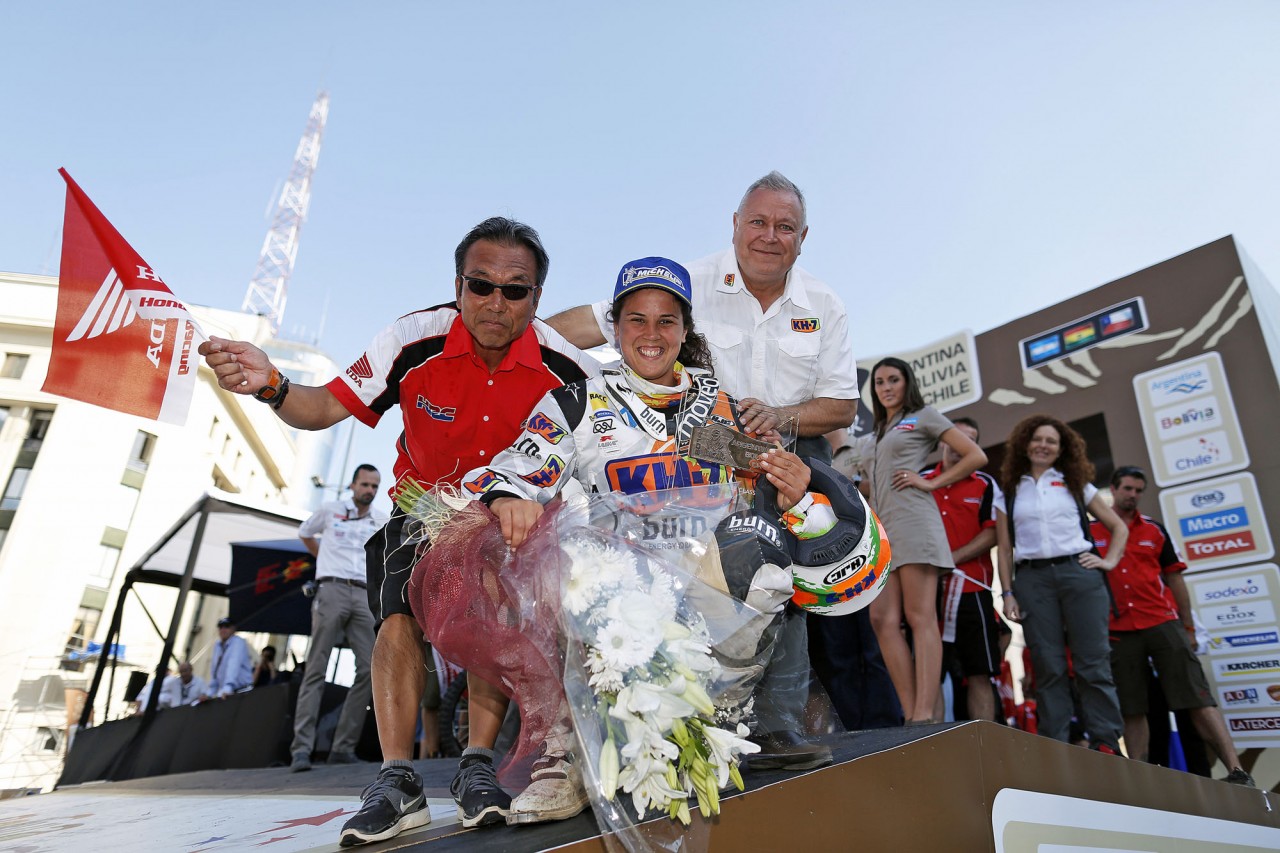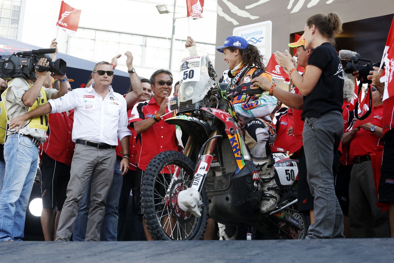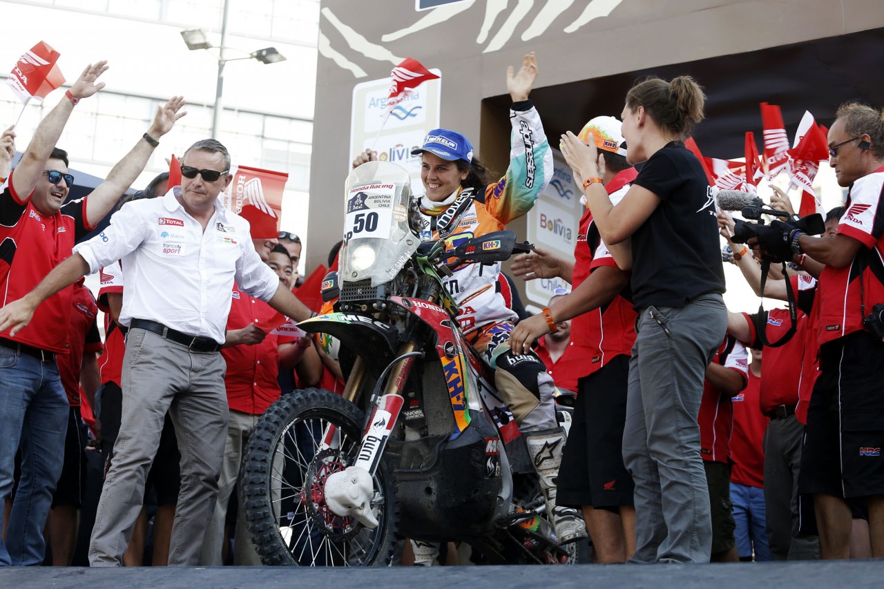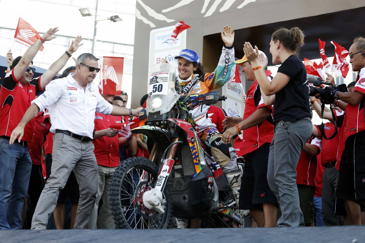 在世界技術(shù)障礙賽(Trial)早已聲名顯赫(最近13 年的世界冠軍頭銜)的珊斯,今年是她連續(xù)第四次參加達喀爾拉力賽,使用的賽車是Honda CRF450 Rally。在過去的三屆比賽中,珊斯分別獲得了第39(2011年)、39(2012年)、93(2013年),在賽前接受媒體采訪的時候,珊斯表示,她今年的目標是獲得第25到30之間的名次。賽后珊斯表示,這樣的成績超出了所有人的預(yù)期,“ 我簡直不敢相信 ”,她如是說。