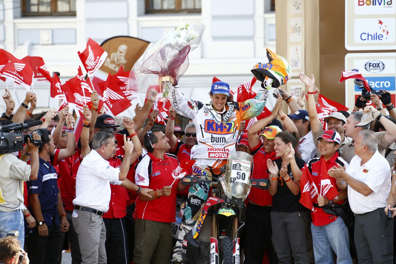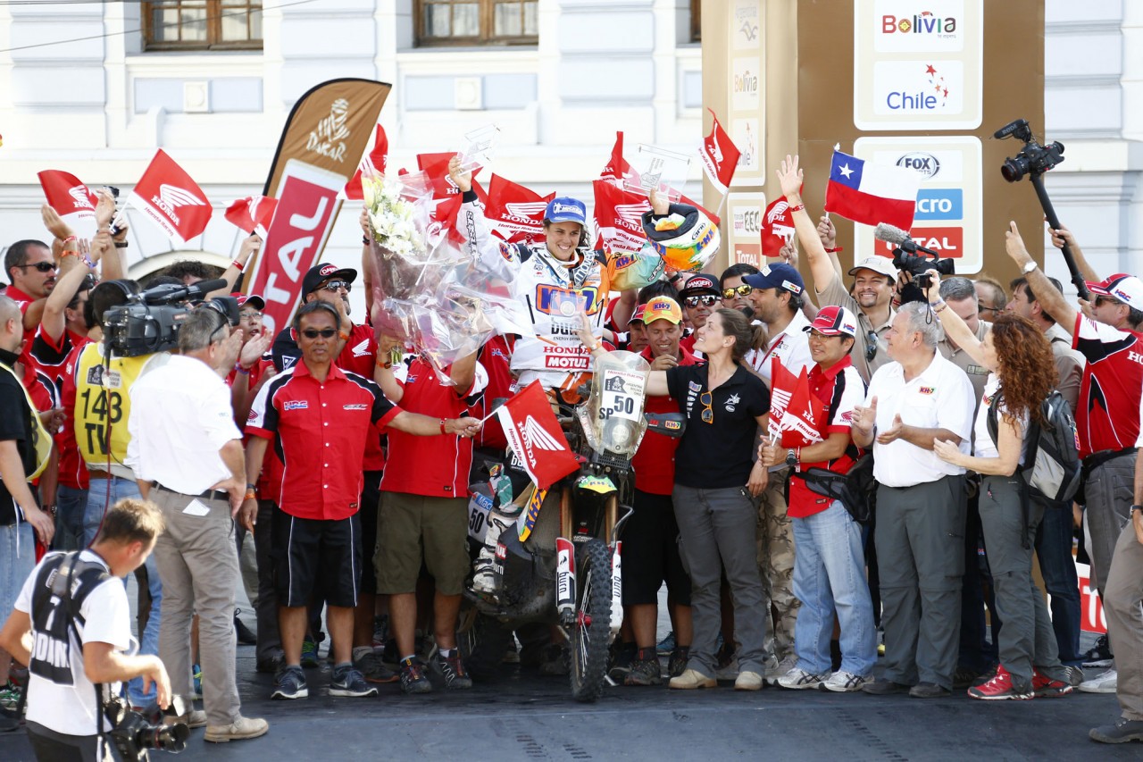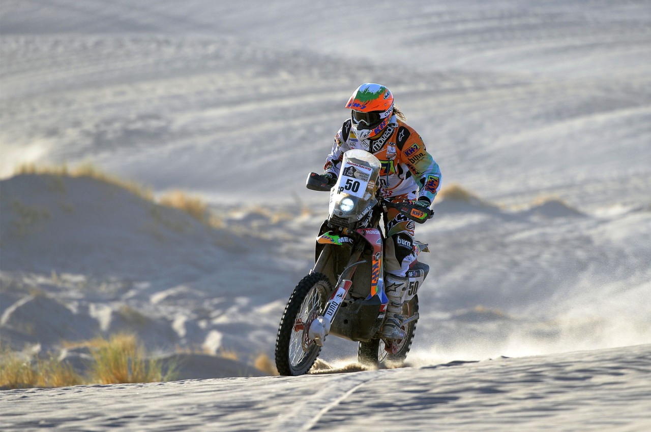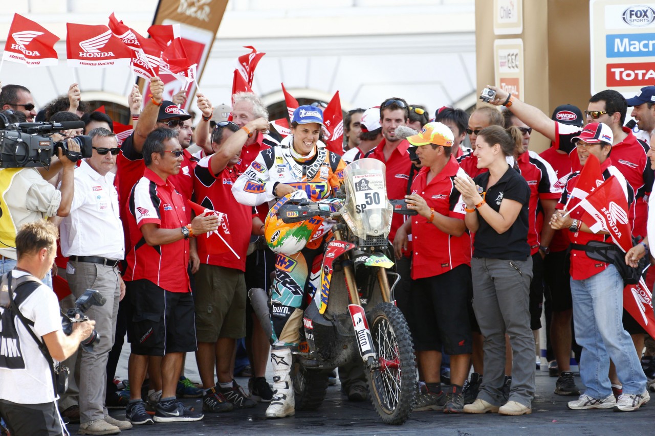 在世界技術(shù)障礙賽(Trial)早已聲名顯赫(最近13 年的世界冠軍頭銜)的珊斯,今年是她連續(xù)第四次參加達喀爾拉力賽,使用的賽車是Honda CRF450 Rally。在過去的三屆比賽中,珊斯分別獲得了第39(2011年)、39(2012年)、93(2013年),在賽前接受媒體采訪的時候,珊斯表示,她今年的目標是獲得第25到30之間的名次。賽后珊斯表示,這樣的成績超出了所有人的預(yù)期,“ 我簡直不敢相信 ”,她如是說。