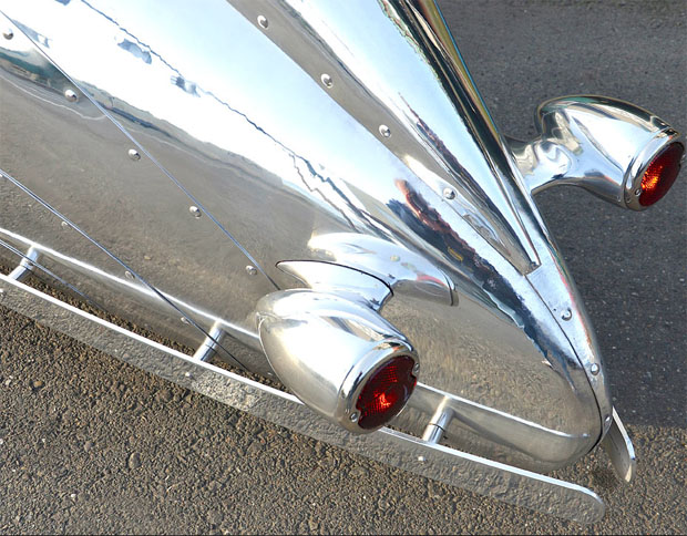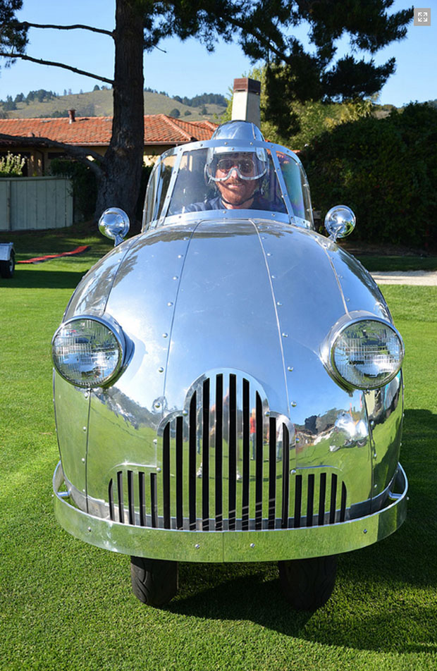 究竟一臺三輪PIAGGIO MP3可以玩到幾激?答案是拆走原裝外殼,然后蓋上淚珠型鋁合金護(hù)甲,加上一對圓渾渾車頭大燈及的骰車身,趣致又可愛。美國著名電視主持人Jay Leno訪問了金屬工匠藝術(shù)家RANDY GRUBB,看他怎樣把MP3變身成為陸上飛船-DECO TRI-POD。