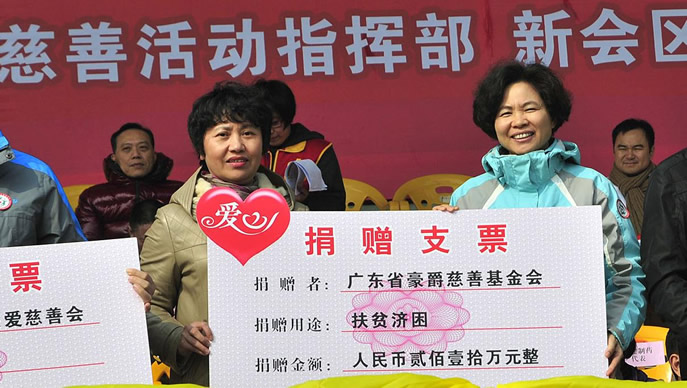 2月14日,是傳統(tǒng)元宵佳節(jié)與西方情人節(jié)雙節(jié)合一的日子,江門市第10屆慈善公益萬人行活動起步儀式在市體育場隆重舉行。豪爵慈善基金會榮獲“僑鄉(xiāng)慈善貢獻(xiàn)獎”,現(xiàn)場再捐善款210萬元。
