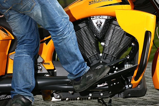 相較于Indian Chief Classic的優(yōu)雅沉穩(wěn),透過科技的導入,與造車思維跟上時代的腳步,Cory Ness Cross Country以更現(xiàn)代的語匯,道出Victory對于美式機車該有的態(tài)度。沒有夸張的鍍鉻、沒有鋼絲設(shè)計的輪圈、沒有輪胎的白邊,后現(xiàn)代的美式機車,Cory Ness Cross Country表現(xiàn)得相當透徹,大而華麗的現(xiàn)代與經(jīng)典全數(shù)上身,一次購買全數(shù)的精彩,這種超值的思維,似乎相當吸引人。