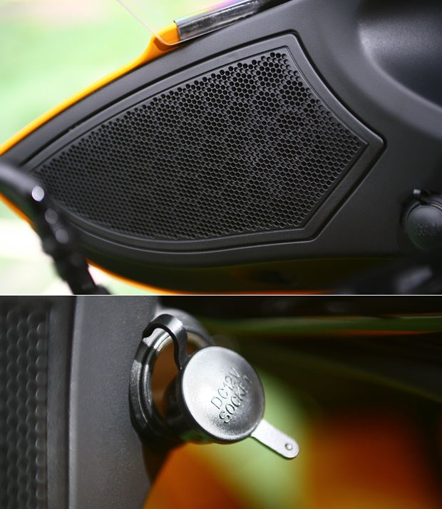 前擋風玻璃下有著喇叭設(shè)計與12V插座功能,以科技提升用車的便利。