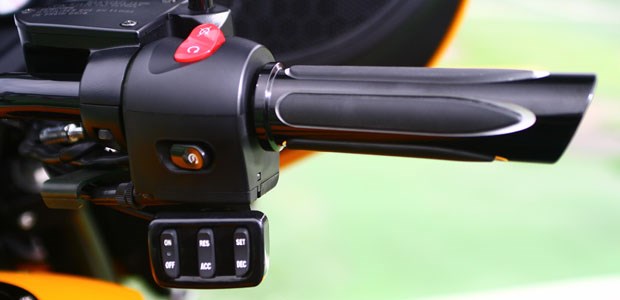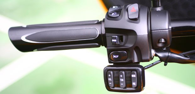 左把手總成,下方為音響系統(tǒng)開關(guān)按鍵;換上了改裝把手后,原有的把手加溫功能則取消。