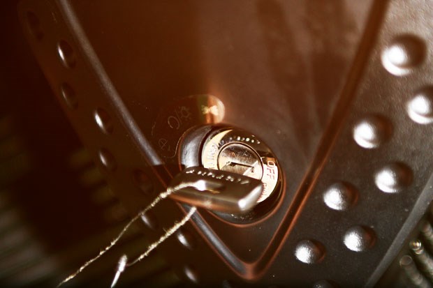鑰匙開關(guān)設(shè)于引擎一側(cè),傳統(tǒng)的美式機車設(shè)計。
