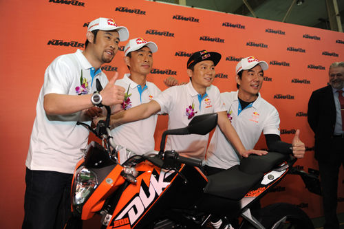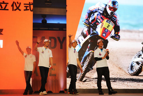 3月27日,由臺灣知名歌手、影星任賢齊領(lǐng)銜的摩托車車隊“星之隊”于杭州正式亮相。除任賢齊外,車隊成員還包括國內(nèi)著名演員李晨、黃覺,加上國內(nèi)越野拉力賽場的風(fēng)云人物趙宏義、張敏,車隊集“影視歌車”四棲為一身,成為中國越野摩托車領(lǐng)域一支最具實力、最有特點、最強(qiáng)混搭的隊伍。對車隊的未來任賢齊充滿信心: “我們的目標(biāo)是參加2016年的達(dá)喀爾拉力賽!”