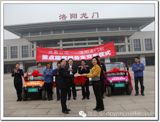 大陽巧客四輪車作為洛陽龍門站便民服務車,能起到優(yōu)勢互補,雙方共贏的良好效果。對企業(yè)而言能起到很好的宣傳展示效果和樹立良好的社會形象;對洛陽龍門站而言,可以為旅客提供便捷、貼心的服務,提升服務檔次,提升服務形象,樹立良好的社會形象。