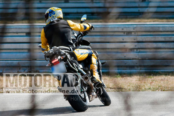 從諜照來(lái)看,S1000 F的車頭仍舊采用類似于S1000 RR的前風(fēng)擋,不過面積有所增加而且燈罩下方延伸出類似于R1200 GS鳥嘴狀的擋泥板,發(fā)動(dòng)機(jī)兩側(cè)的整流罩依然采用鯊魚鰭的形狀,雖然照片中的測(cè)試車采用重度偽裝,不過整體外觀簡(jiǎn)直就是S1000 RR的加高版。
