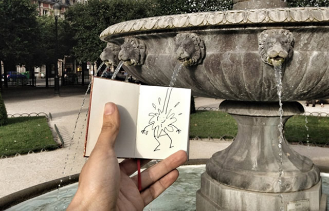 核心提示:帶上一個小小筆記本踏上旅途,遇見一些場景就即興創(chuàng)作,畫出一個與周圍環(huán)境互動得很high的小人,然后再把它們拍下來。正是因為有