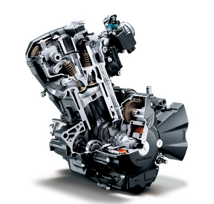 引擎缸徑與行程為76mmx55mm,是與CBR1000RR同樣的短行程高轉(zhuǎn)數(shù)引擎(CBR1000RR缸徑行程為76mmx55.1mm),令引擎轉(zhuǎn)數(shù)比前一代提高500rpm,并增加了1kW的馬力輸出。在動(dòng)力提升的同時(shí),也保有良好的燃油經(jīng)濟(jì)性,實(shí)驗(yàn)測(cè)試每公升可行駛50.1km。為了進(jìn)一步營(yíng)造性能車款輕快的拉轉(zhuǎn)性能,修改空濾與進(jìn)氣岐管的設(shè)計(jì),并搭配新設(shè)計(jì)的排氣管,讓CBR250R引擎反應(yīng)比前一代更快速。