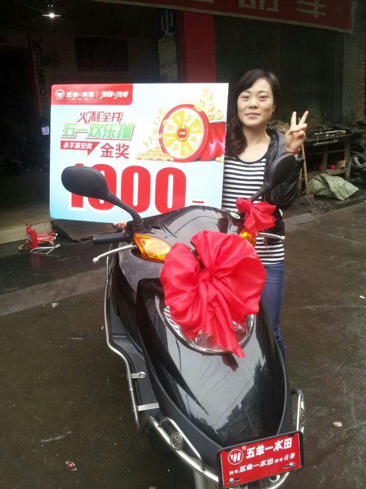 五羊-本田“千元大獎(jiǎng)時(shí)時(shí)抽,摩托大獎(jiǎng)天天送” 五一購車抽獎(jiǎng)活動(dòng),以100%中獎(jiǎng)概率以及每天的“超級(jí)大獎(jiǎng)”在全國(guó)引發(fā)轟動(dòng),湖南也不例外。