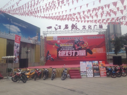 在廣西荔浦開展了“絕對(duì)力量——2014宗申摩托大型巡展活動(dòng)”。宗申摩托在活動(dòng)現(xiàn)場展示了RX3、閃電、Z-one等車型,迅速引起摩迷圍觀,現(xiàn)場火爆。5月3日晚舉行的活動(dòng)晚會(huì)更是人氣爆棚,現(xiàn)場觀眾達(dá)到2000人以上。