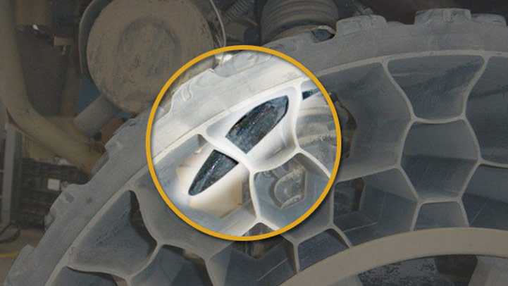 北極星發(fā)言人表示他們已經(jīng)在軍事和救災(zāi)行動中測試過非充氣輪胎,并取得了很大成功,比如在中彈的情況下行駛350英里,在扎有3英寸道釘?shù)那闆r下在復雜地形上行駛1000英里?,F(xiàn)在他們打算把這種技術(shù)應(yīng)用到消費市場。有了這種耐用的非充氣輪胎,恐怕備胎就要下崗了吧?