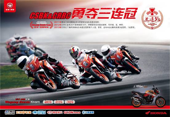 回顧2011年至2013年,每一屆CSBK或者CRRC揭幕戰(zhàn),五羊-本田車隊都取得了開門紅的成績,甚至包攬冠、亞、季軍,正是這種壓倒性的強勢貫穿了每個賽季,最終達成了車隊“三連冠”榮耀。在“魔鬼教頭”王西利的帶領(lǐng)下,五羊-本田車隊不斷擊退各路強敵,捍衛(wèi)冠軍榮耀。