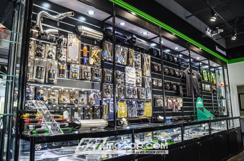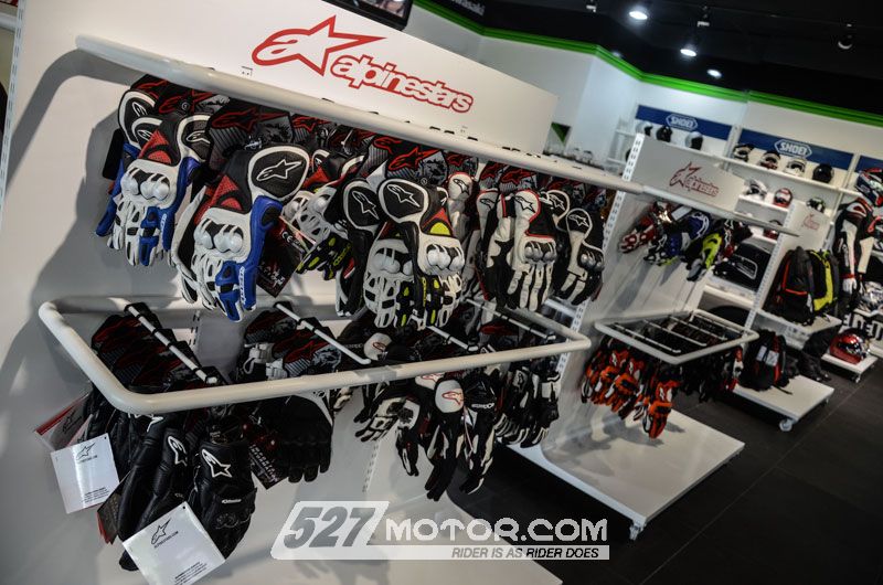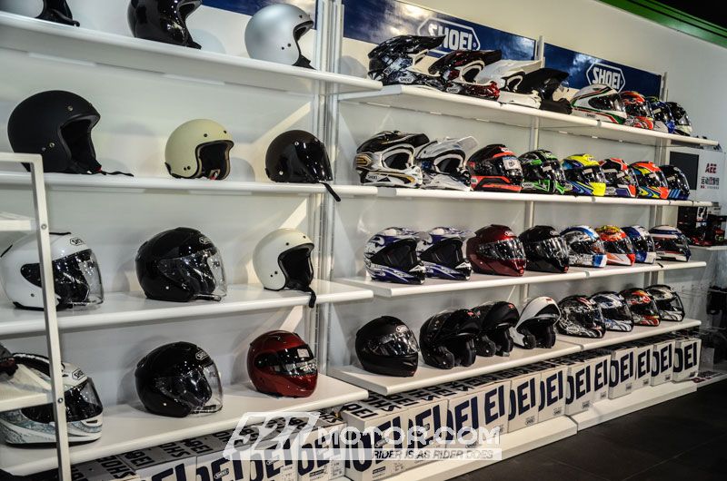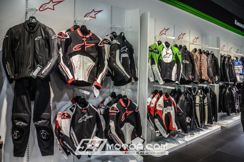 川崎北京旗艦店除了有令人心馳神往的大排重機外,還有玲瑯滿目的裝備配件供車友選擇。風(fēng)火輪為Alpinestar、Shoei這兩個國際一線品牌的中國總代理,發(fā)售產(chǎn)品包括頭盔、皮衣、賽車服、賽車皮衣\皮褲、手套和公路款車靴等等。另外,這里還有Dainese、HJC、DMD、DMV、ABUS、GIVI等等配件可供挑選,令人目不暇接。