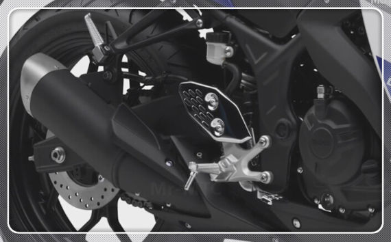 R25所使用的車架型式類似MT-07的鋼管環(huán)抱式車架,但車體布局完全符合現(xiàn)代跑車的設(shè)計(jì)。車座與油箱如同YZF-R6一樣,高于車架,在車架與油箱車座之間加上車架護(hù)蓋。這樣設(shè)計(jì)的好處可以縮小油箱寬度,讓騎士騎乘更容易夾緊車輛,這樣的設(shè)計(jì)方式現(xiàn)在已成為多數(shù)600mL及1000mL跑車的設(shè)計(jì)趨勢(shì)。雖然在小排氣量車款上不需要如同公升級(jí)一樣的粗壯搖臂,不過(guò)一樣采用Yamaha一直使用的三角型概念設(shè)計(jì),提供更高的強(qiáng)度,不像一般入門車款用單純的方管式后搖臂。