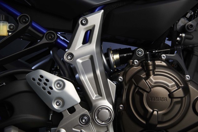 雅馬哈FZ-07配備一個排量為689cc的8氣門并列雙缸水冷發(fā)動機,最大馬力74匹,最大扭矩68牛·米,據(jù)官方消息稱,3000轉到6500轉這一轉速區(qū)間具有相當出色的性能表現(xiàn),而且其最大扭矩在6500轉時便會爆發(fā)出來,因此在其經(jīng)常用到的中低轉速,F(xiàn)Z-07有著極高的駕駛激情。