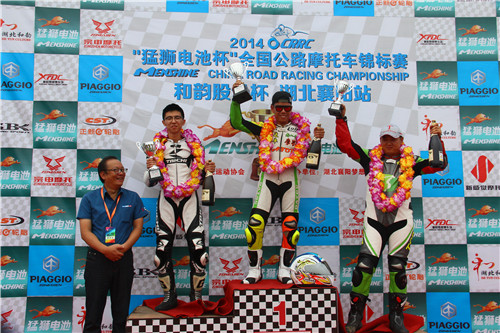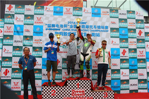 上一站,比亞喬踏板125CC組前10圈能定勝局,本場最后2圈仍難分勝負(fù);隨同賽局變化的還有天氣,首日微雨,次日高溫,氣候的無常加上復(fù)雜的賽道讓賽局更加變化莫測,也對(duì)車手的體力、經(jīng)驗(yàn)都提出了非常高的要求,摩托車比賽的瞬息萬變?cè)诒緢鲑愂轮斜惑w現(xiàn)得淋漓盡致。經(jīng)過激烈角逐,最終,比亞喬踏板125CC組別的冠軍由個(gè)人參賽的劉展鵬獲得,幼獸王車隊(duì)的李宗和陜西天石騎兵賽車隊(duì)的毛偉分獲二、三名;
