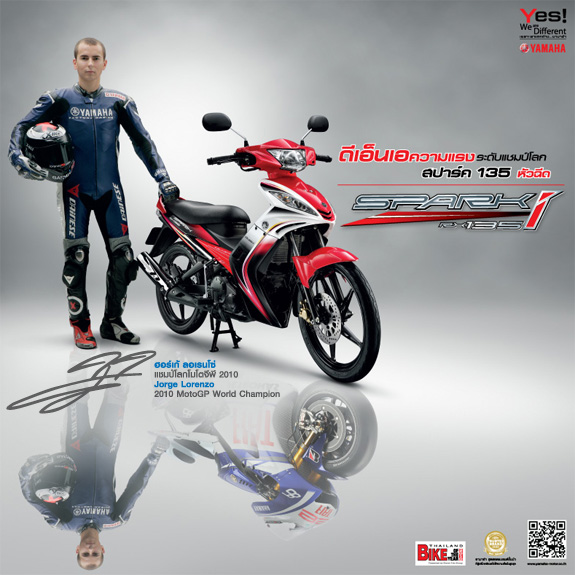 核心提示: Yamaha最近向泰國(guó)市場(chǎng)推出了全新的彎樑車:RX-135i Spark。新車采用一副水冷四沖程單汽缸、OHC四汽閥的發(fā)動(dòng)機(jī),排汽量134cc,電子