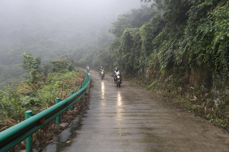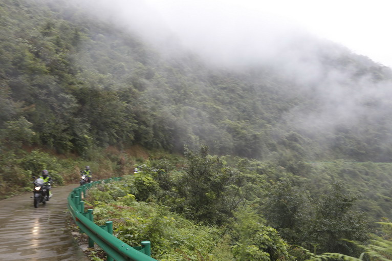 在雨水滴答之下,山里被濃濃云霧圍繞,雖然不能壓彎,慢慢行走,又是另一番風味。