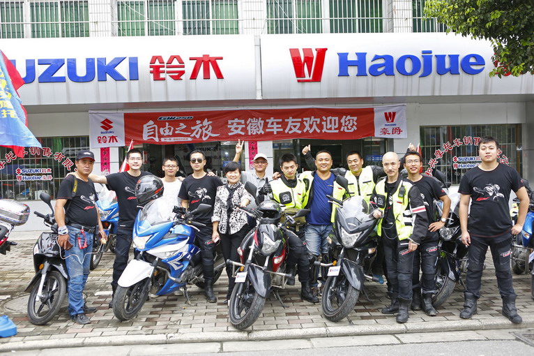 進(jìn)入宣城,受到了“夢(mèng)騎士涇川摩旅俱樂部”的熱情迎接,一起到當(dāng)?shù)氐暮谰魧Yu店合影留念,午飯后,“夢(mèng)騎士俱樂部”的“行天下”、“飆車狂”、“寧缺勿濫”、“23橋”等多位車友為我們帶路,繞開正在修路的省道,從深山中向涇縣進(jìn)發(fā)。