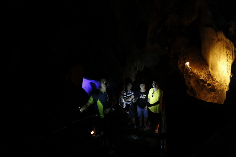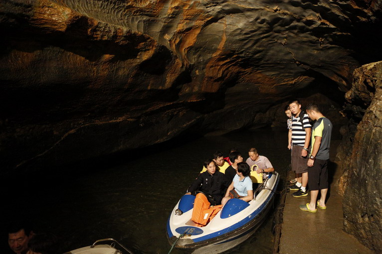 坐上小船,從地下河“逃出”溶洞